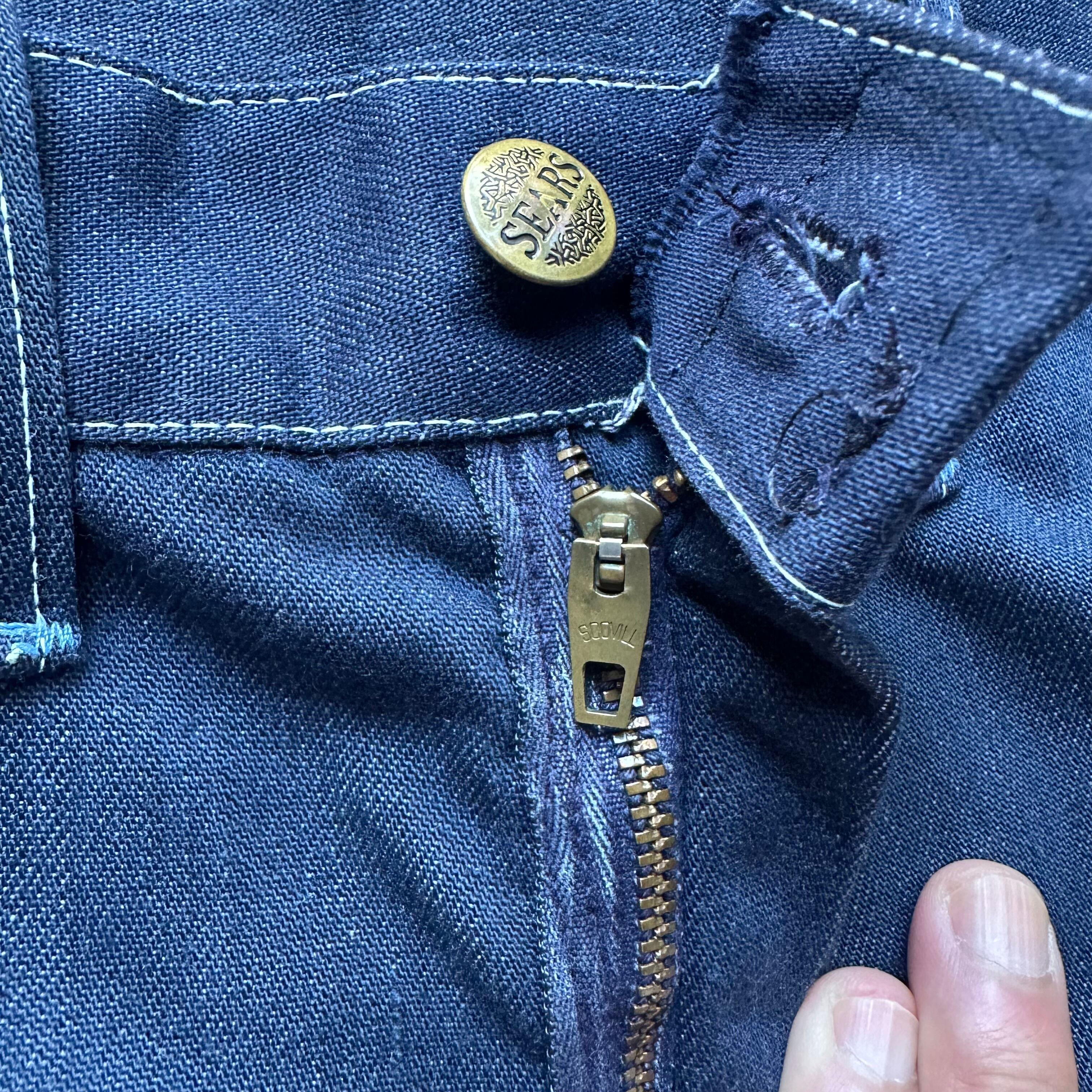 70s Sears シアーズ USA製 UNION MADE ユニオンメイド SCOVILL スコービルジッパー バットダイ デニムペインターパンツ ブルー 34インチ