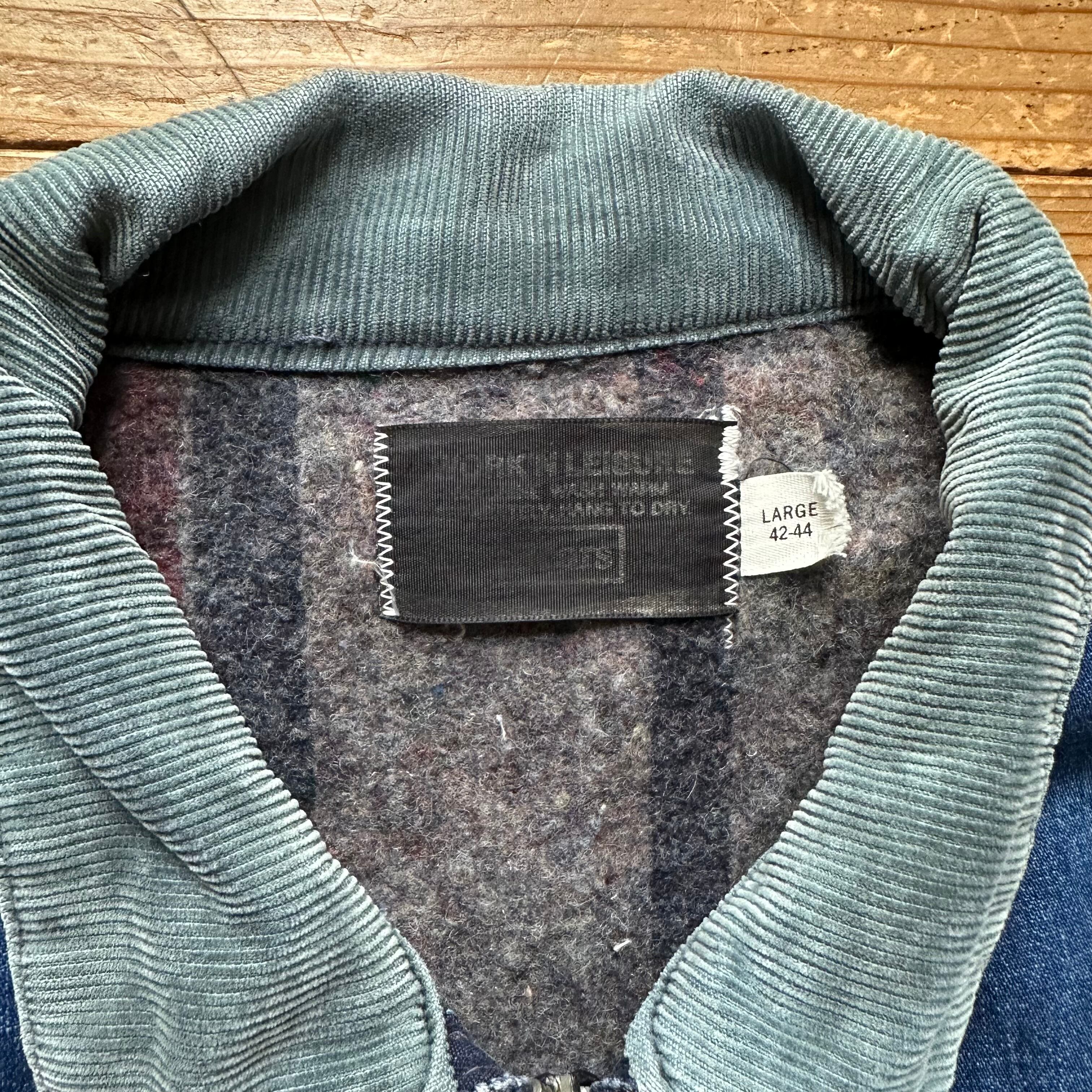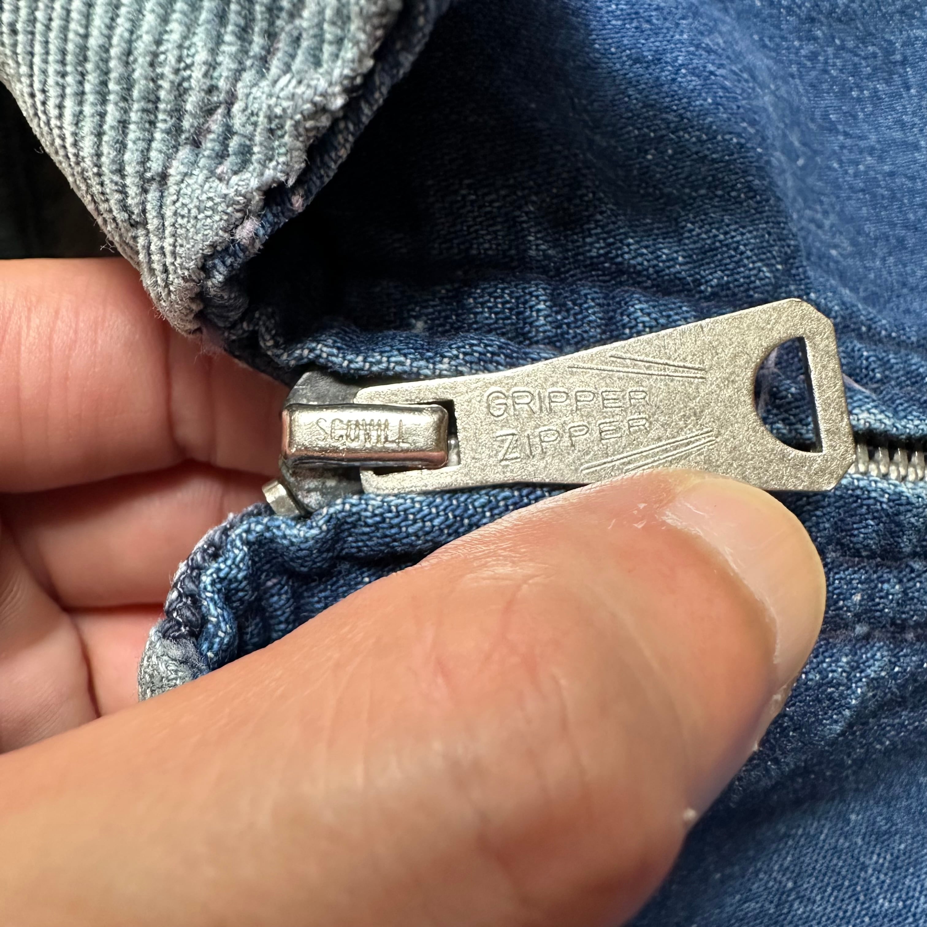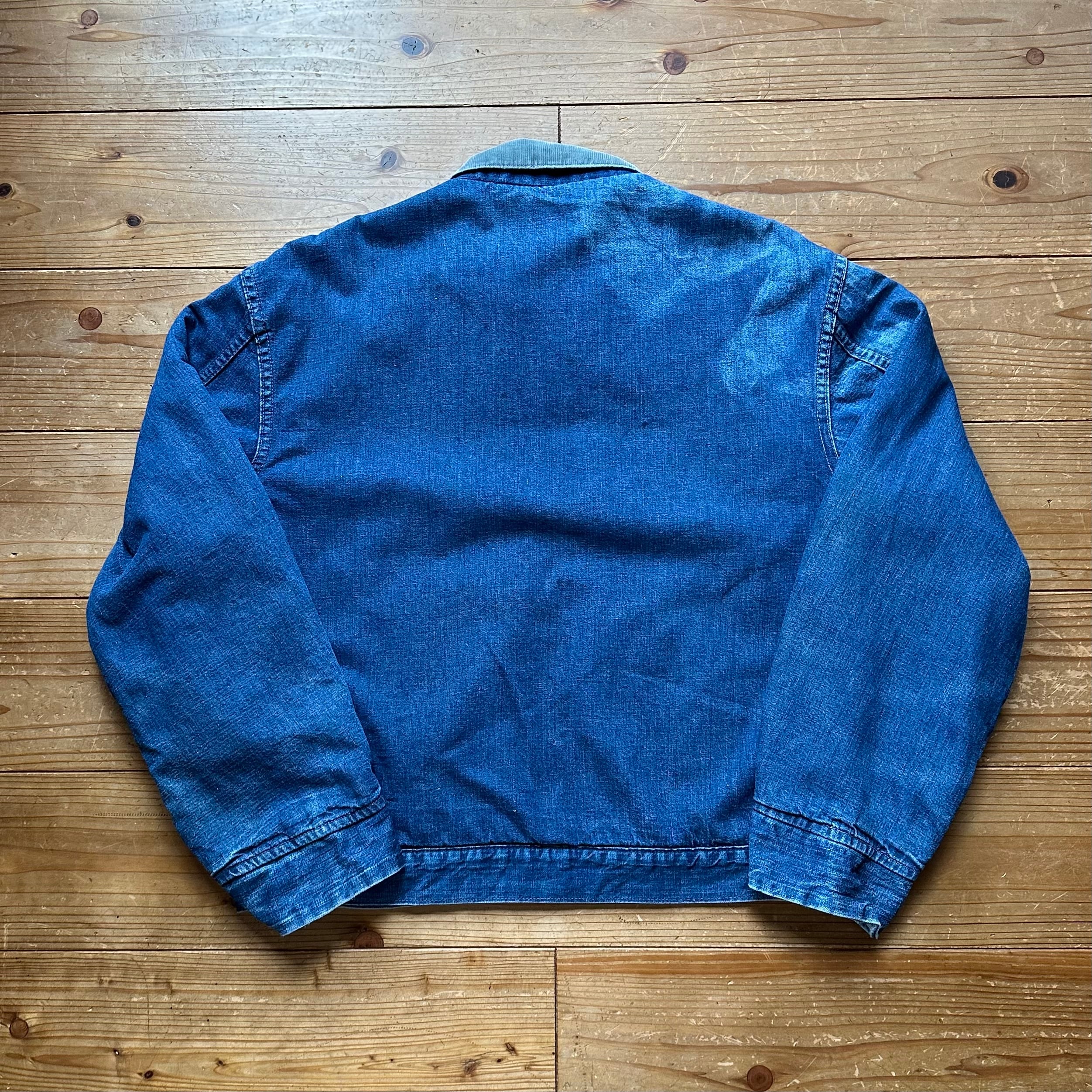 70s SEARS シアーズ Work Leisure scovill gripperジッパー 襟コーデュロイ 裏地 ブランケット ジップアップ デニム ワークジャケット インディゴ L