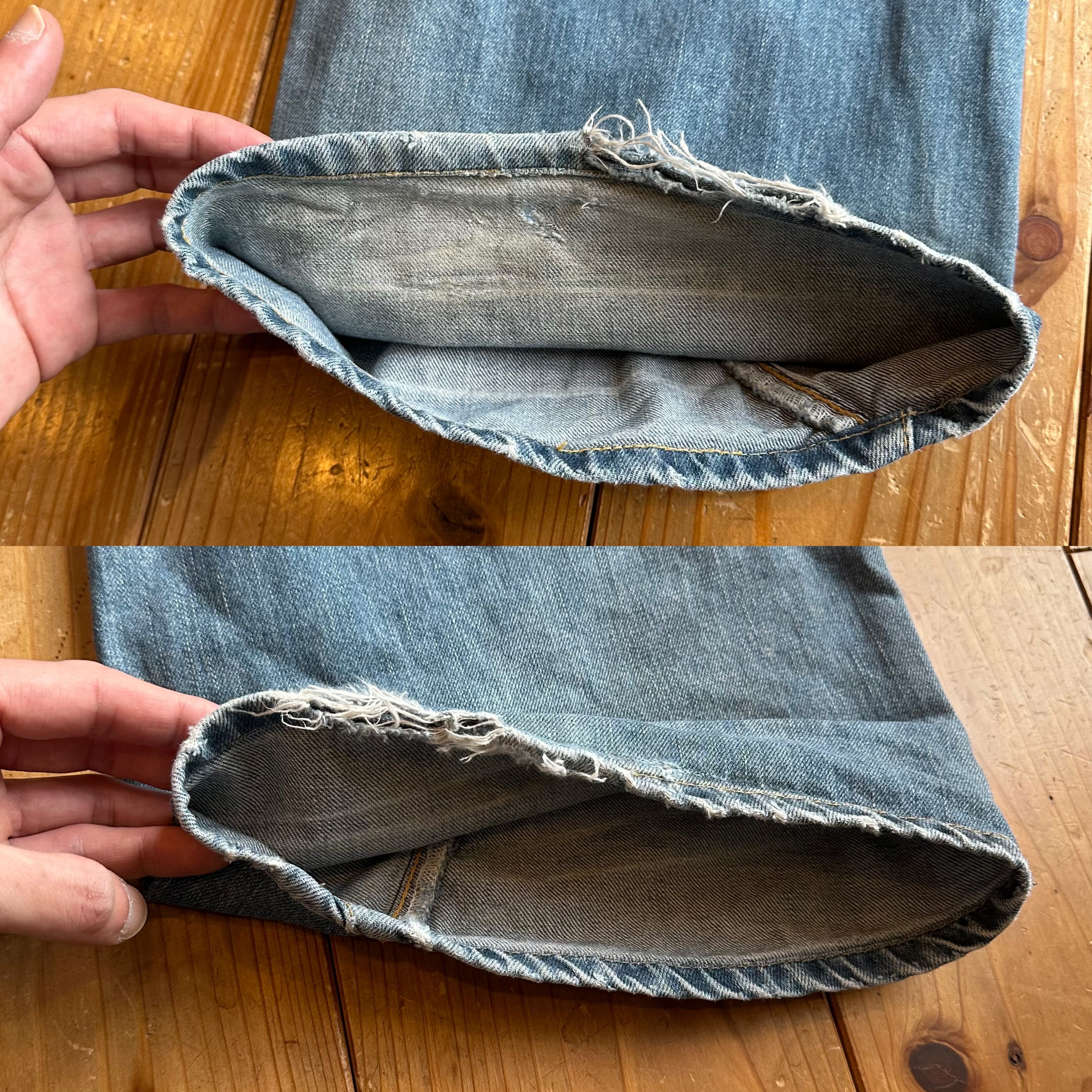 状態…ダブルニー部分に汚れ、主に裾にダメージありますが、雰囲気良好な一枚です。
