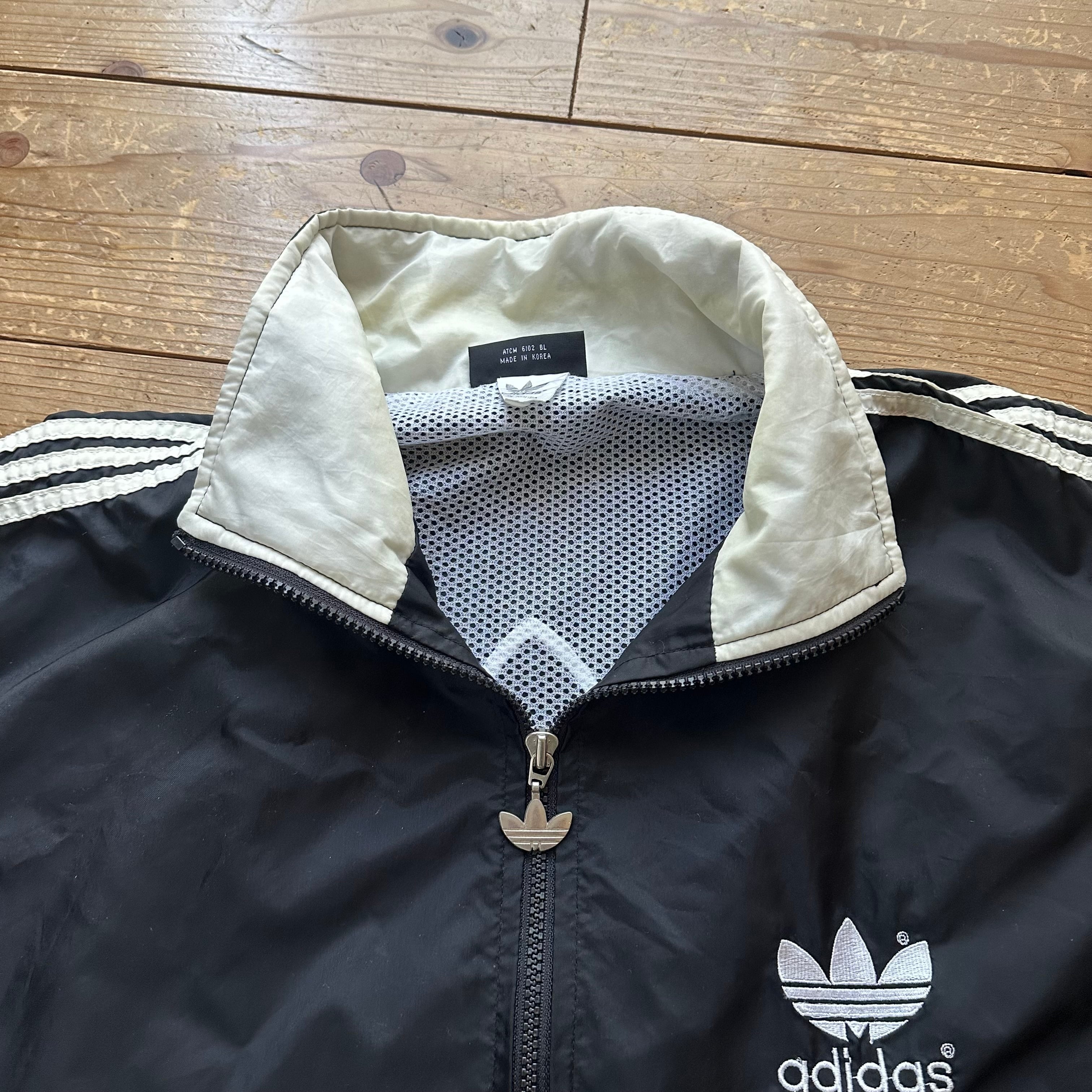 80s old adidas オールドアディダス トレフォイル ビッグロゴ 刺繍 2トーン トラックジャケット 黒白 XL