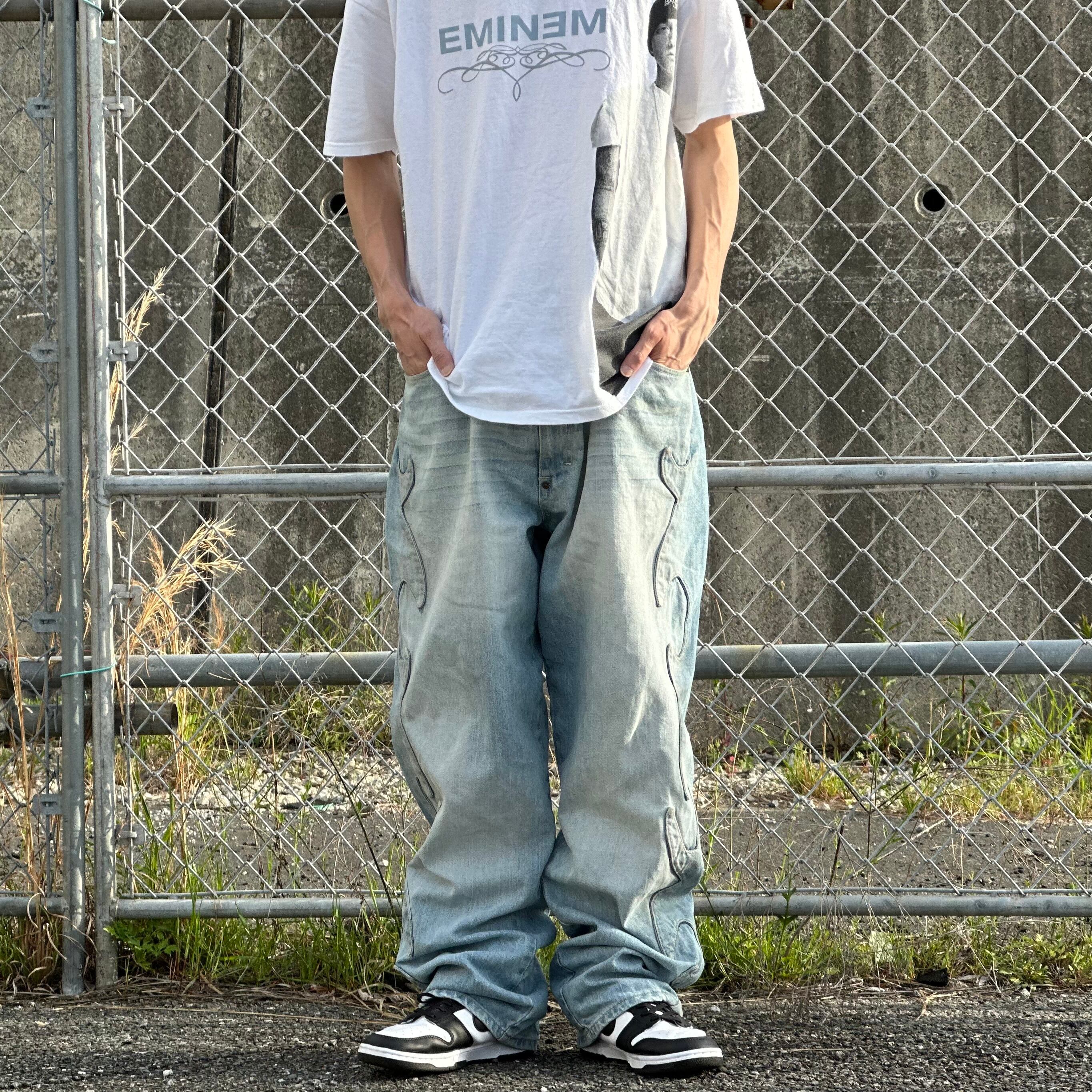 90s y2k indigo red hiphop デザイン バギーデニムパンツ XL