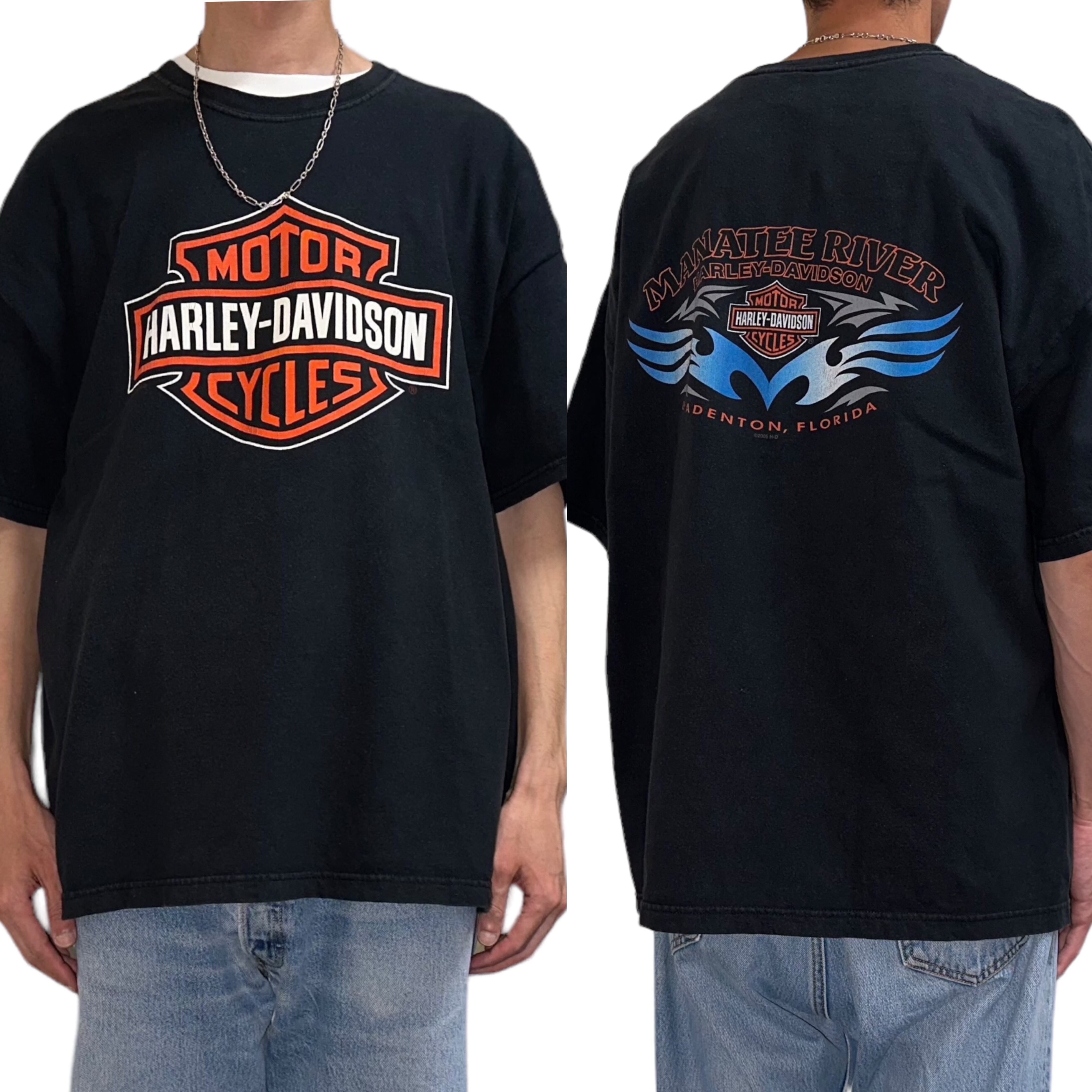 00s USA製 ハーレーダビッドソン 両面プリント Tシャツ ネイビー XXL