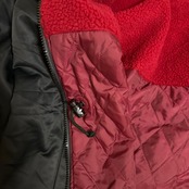 ブラックボディにレッドのスリーラインをあしらった好配色なベンチコート。