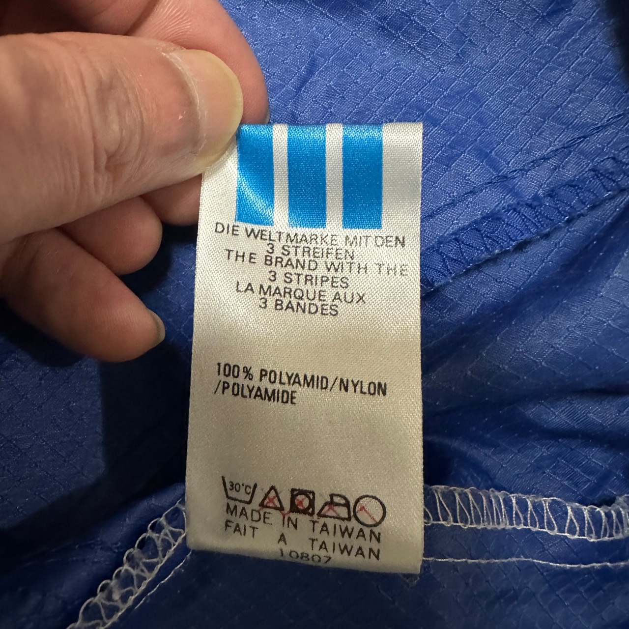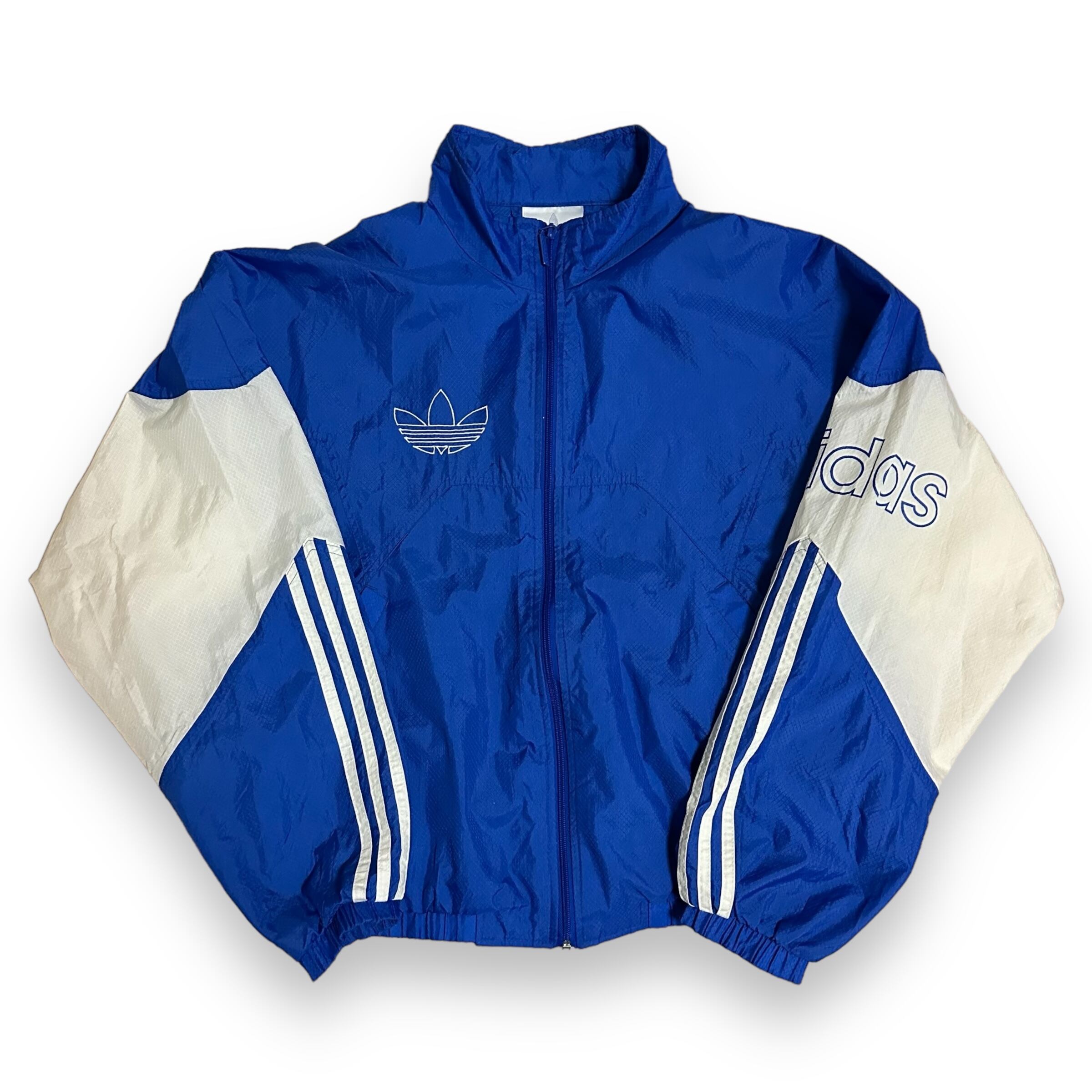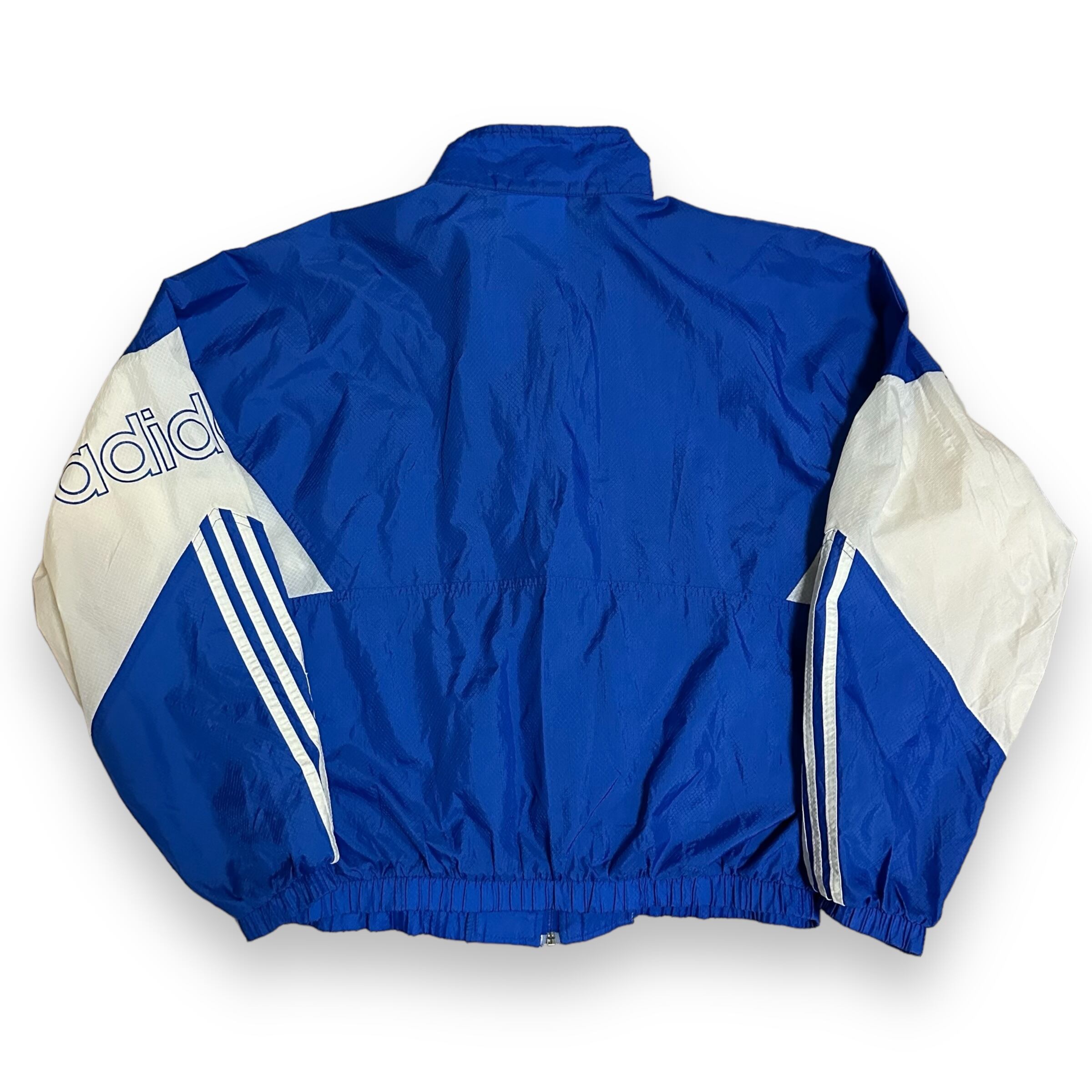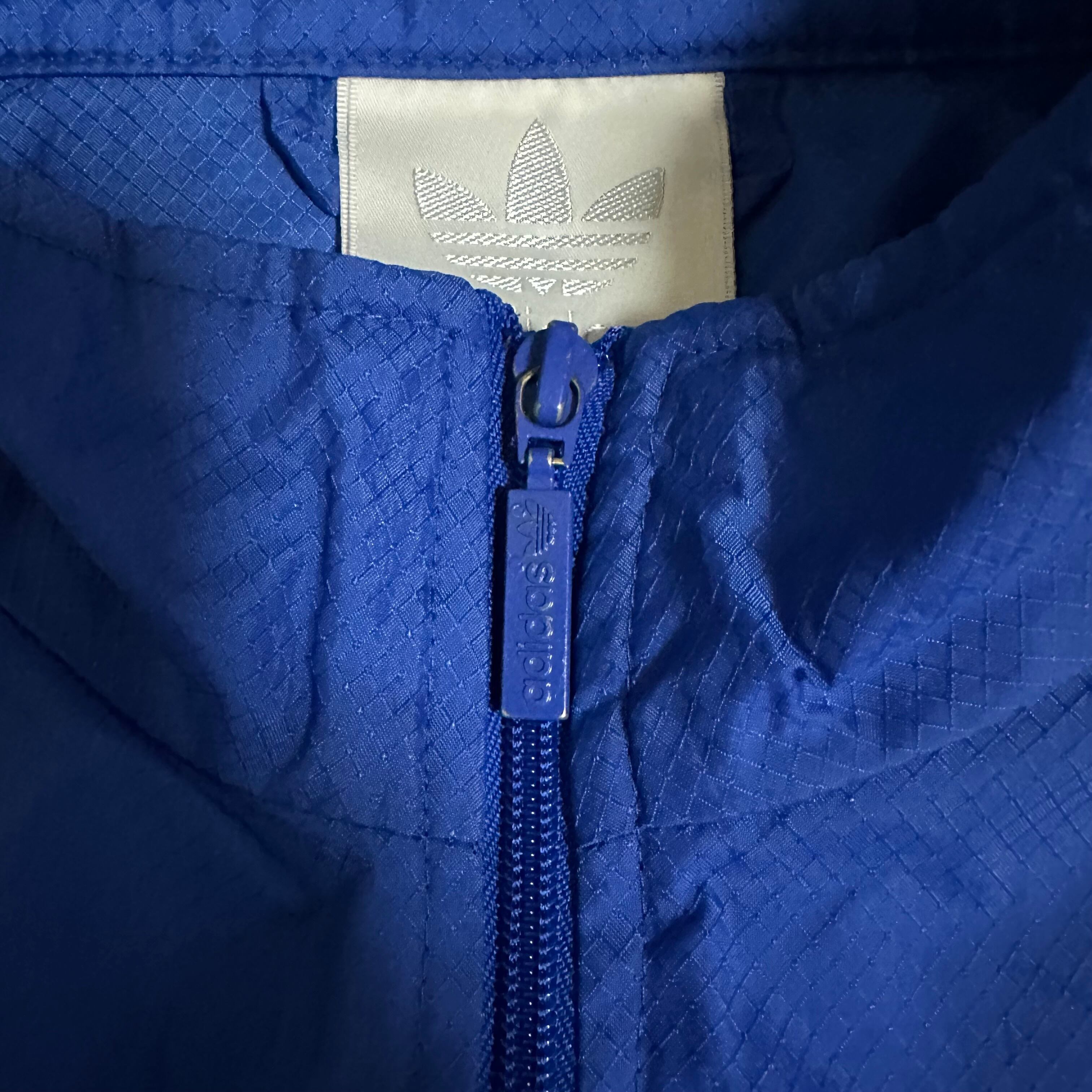 90s adidas 万国旗 銀タグ トレフォイル ナイロンジャケット ブルー M