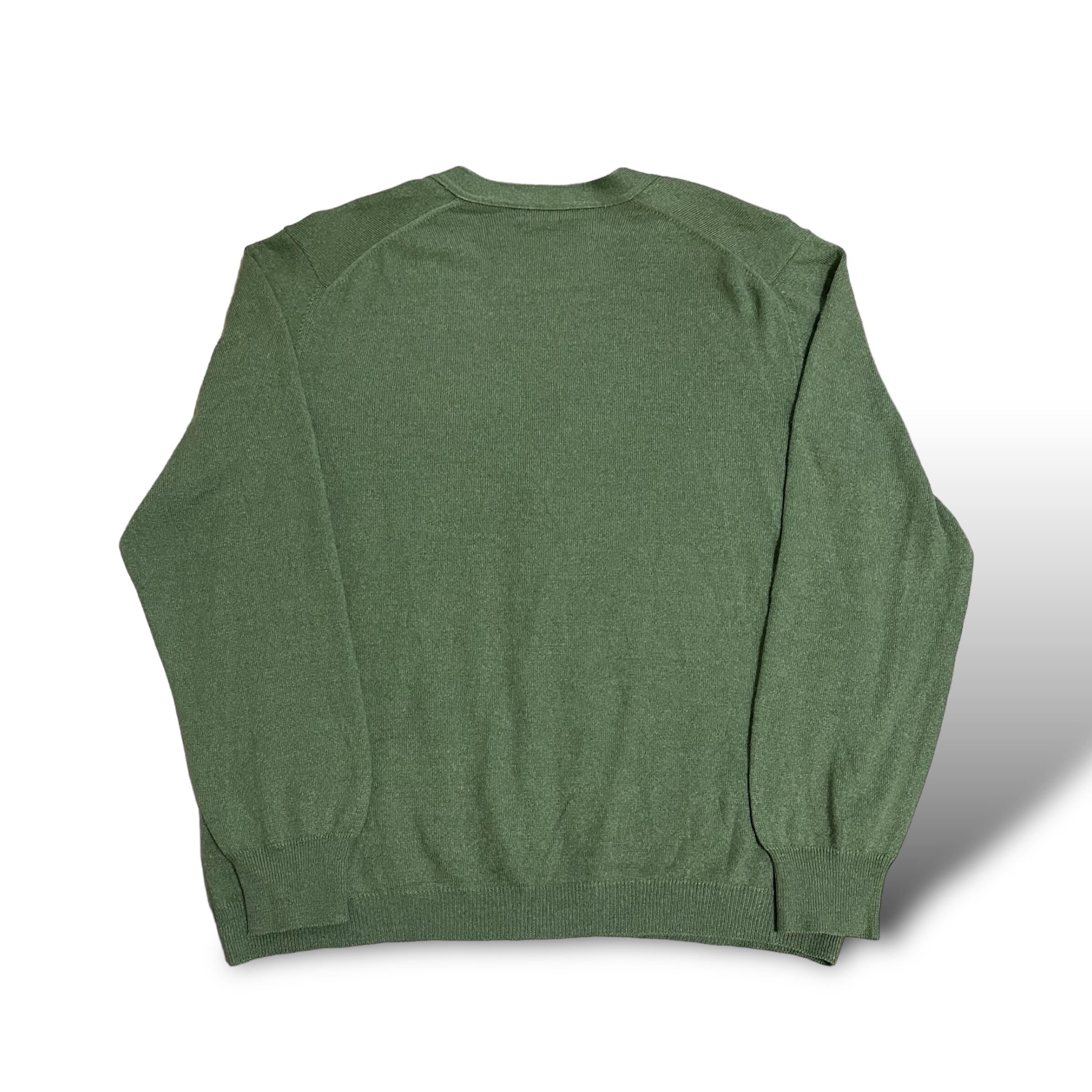 90s~ スペイン製 ラナウール Vネックカーディガン セージグリーン L