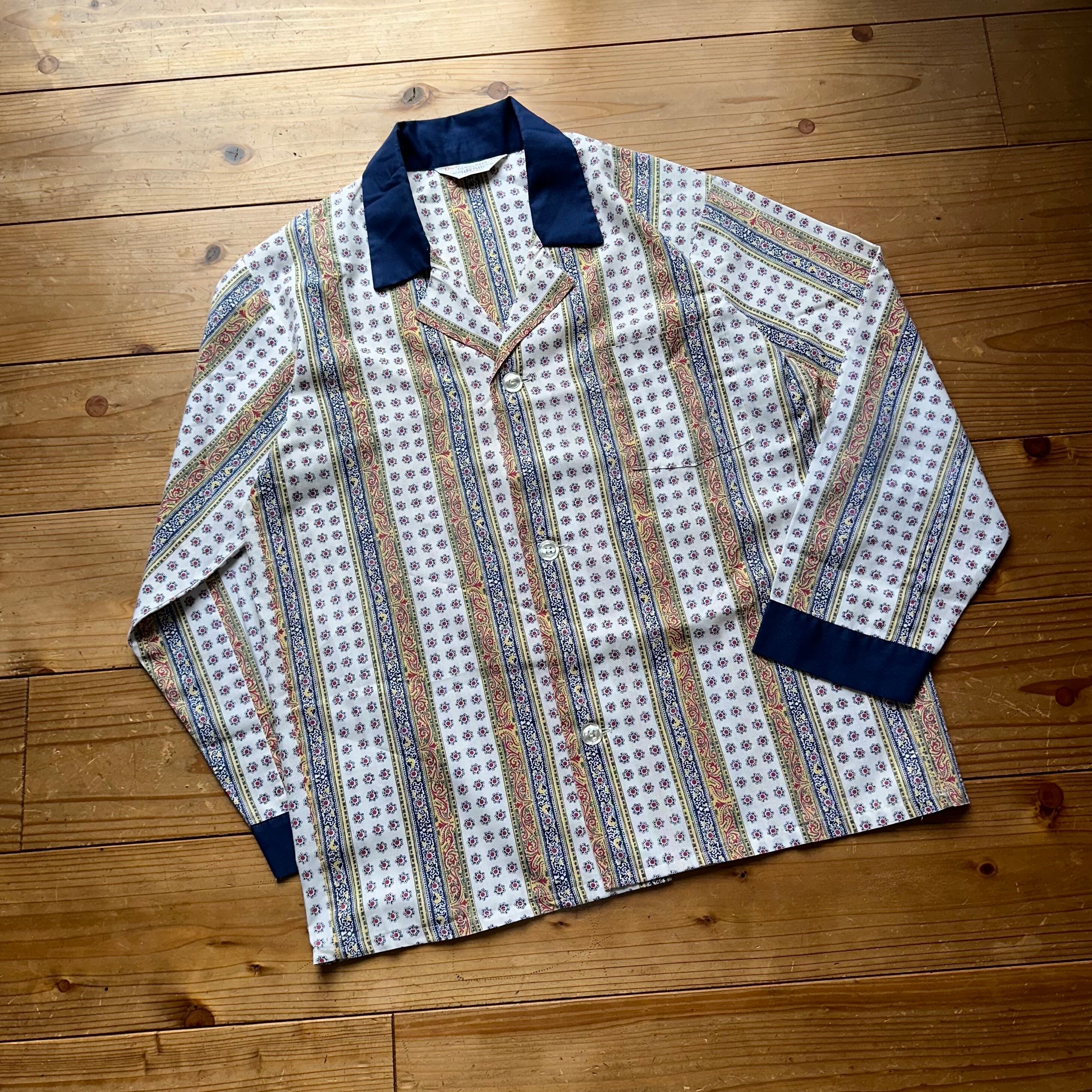 70s VINTAGE TOWNCLAFT JCPenney ペイズリー柄 コットン レーヨンパジャマシャツ ホワイト M