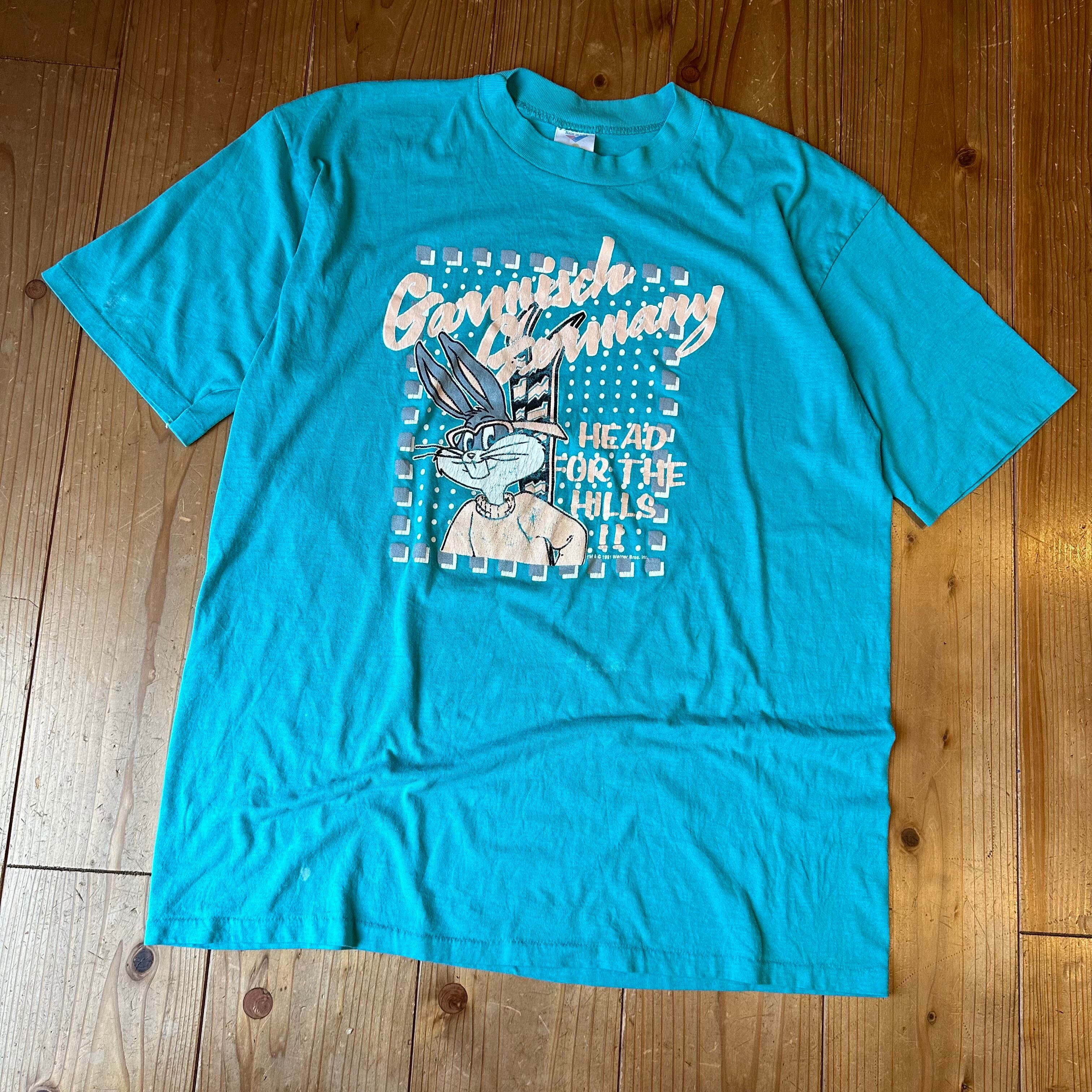 良い色味のグリーンに最高デザインの バッグス・バニーのプリントが施された1991コピーライトの超希少なTシャツ!